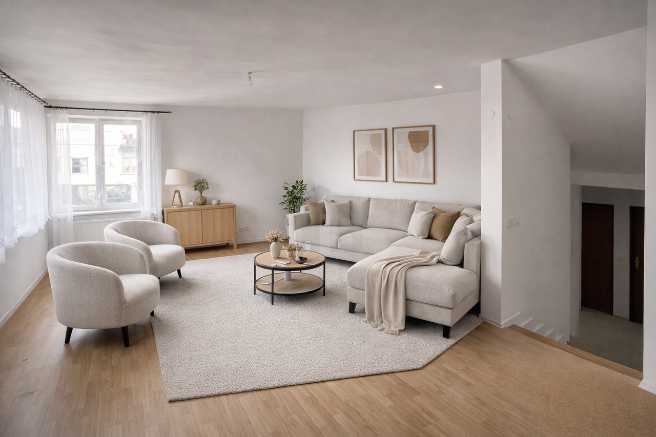 Nabízíme k prodeji prostorný a světlý byt o dispozici 3+1 a celkové ploše 83 m², který se nachází v domě se třemi bytovými jednotkami, což zajišťuje příjemné soukromí a klidné bydlení.